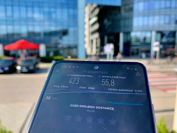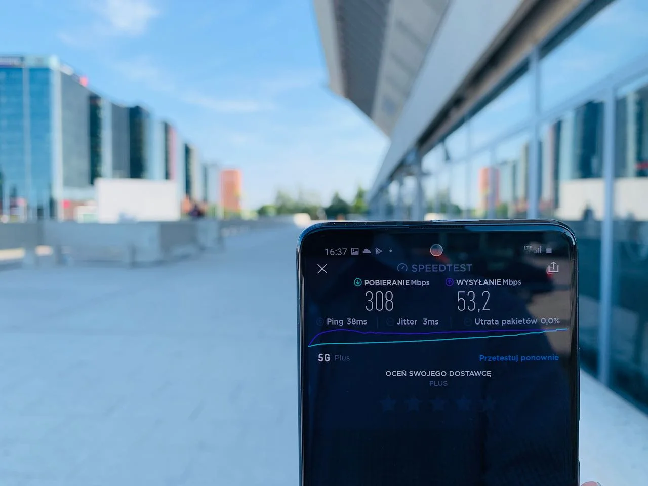 5G to zresztą nie tylko kosmicznie szybkie transfery (na testowanym Samsungu osiągałem transfery wyższe, niż na moim stacjonarnym światłowodzie w firmie), ale i niskie opóźnienia. Tzw. ping nigdy nie był wyższy niż 50 milisekund, co oznacza, że taki internet nadaje się do wszystkich zastosowań, gdzie liczą się nie tylko duże prędkości, ale i brak opóźnień - np. gry sieciowe, ale i telemedycyna czy wideokonferencje.