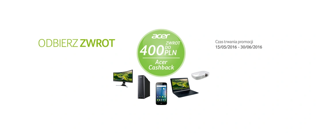 - Acer Cashback - do 400 złotych zwrotu, jeśli kupimy sprzęt Acera do końca czerwca