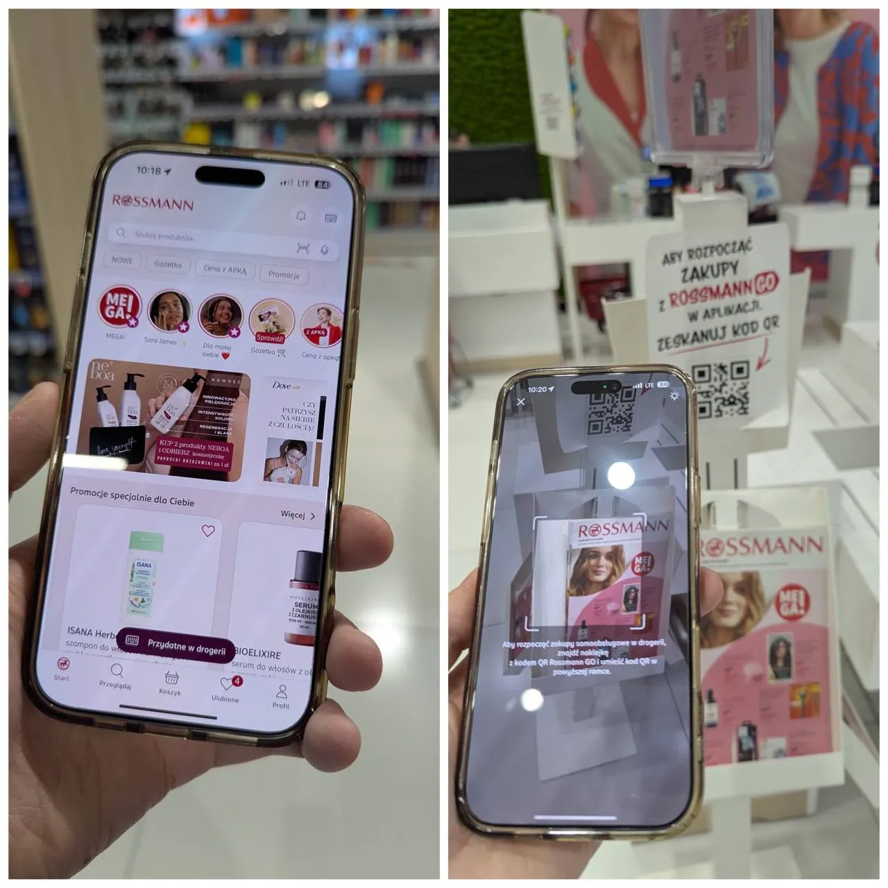 Po zeskanowaniu jednego z kodów QR przy wejściu do sklepu, aplikacja od razu wie, w której drogerii jesteśmy