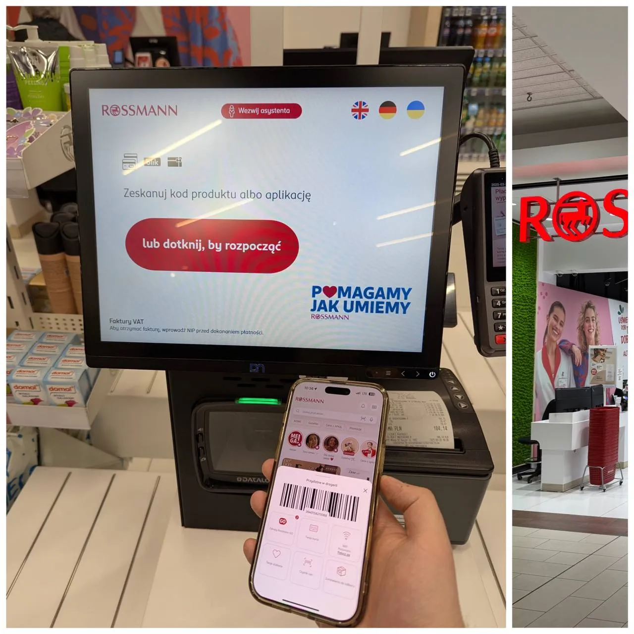 Podchodząc do kasy (jeśli nie zdecydowaliśmy się na zakupy z użyciem funkcji Rossmann GO), należy zeskanować kartę, aby skorzystać z atrakcyjnych rabatów (czyli wspomnianych wcześniej "Ceny z apką").