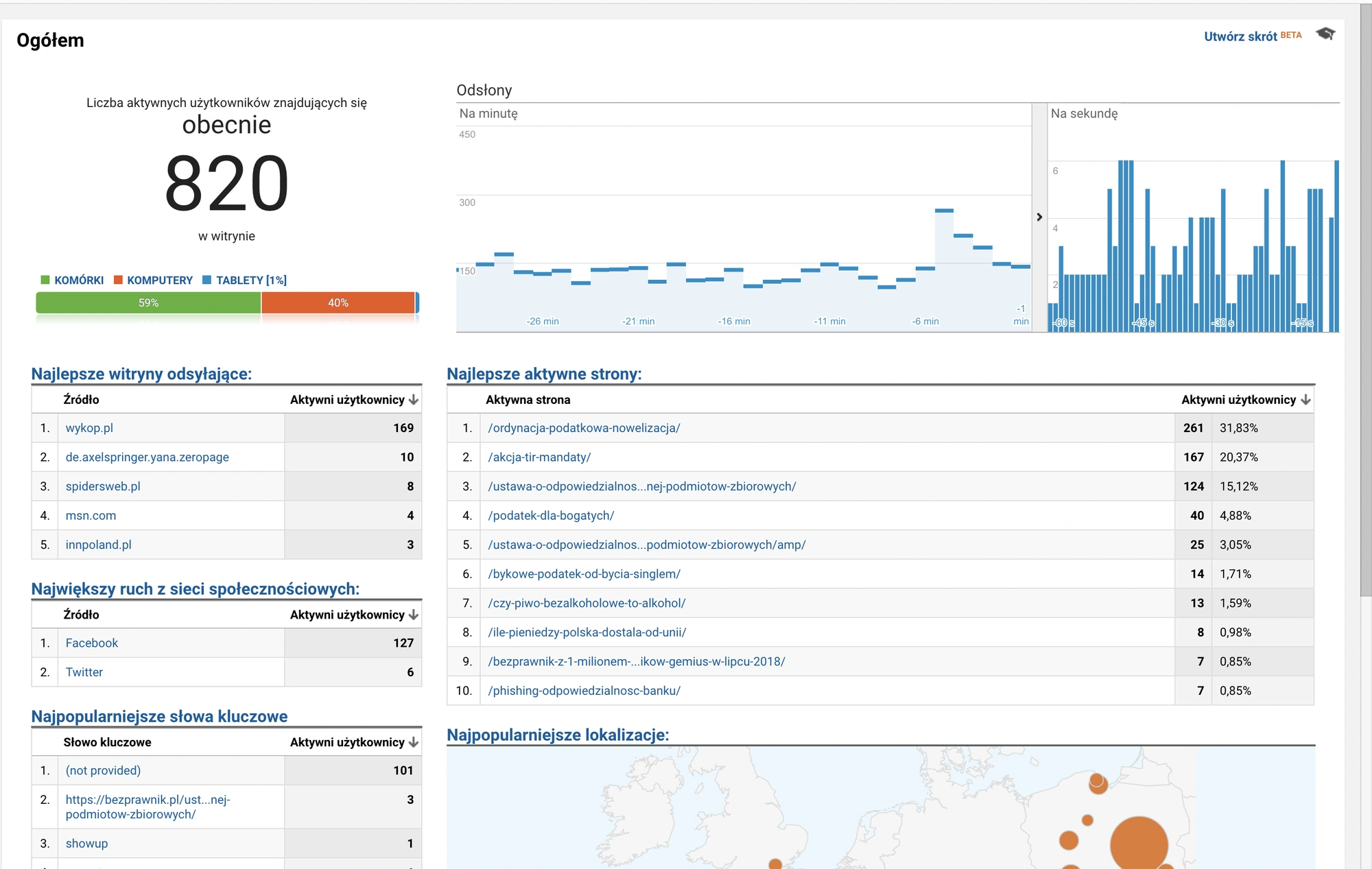 Oczywiście z punktu widzenia pracy redakcyjnej, Google Analytics wciąż pozostaje niepokonany, m.in. dzięki takim narzędziom monitorowania ruchu w czasie rzeczywistym: