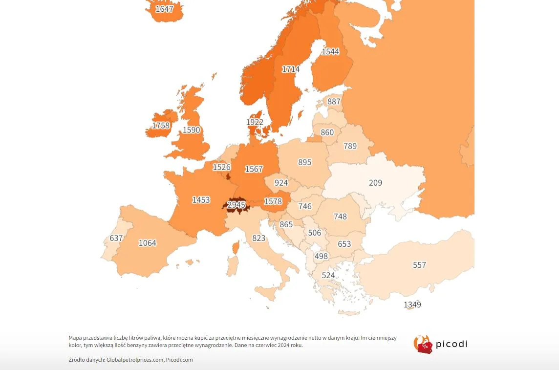 W Polsce średnia cena benzyny wyniosła w czerwcu 6,46 zł. To całkiem tanio. Jeżeli wyodrębnimy kraje należące do UE, to Polska będzie 6. najtańszym krajem. Ale analitycy Picodi Polska sprawdzili też, ile litrów paliwa jest w stanie kupić przeciętny Kowalski za swoją pensję. Tu już nie wypadamy najlepiej.