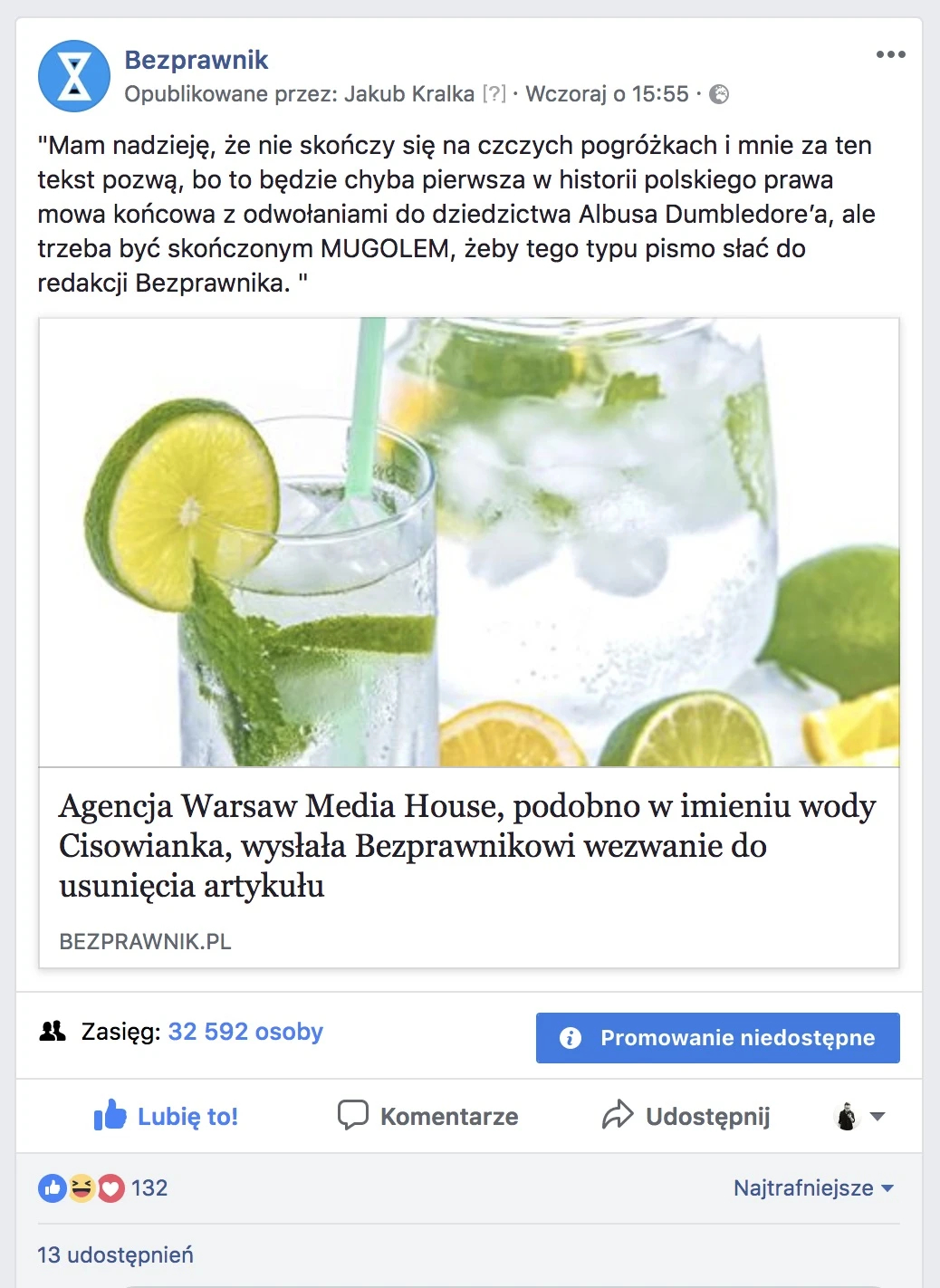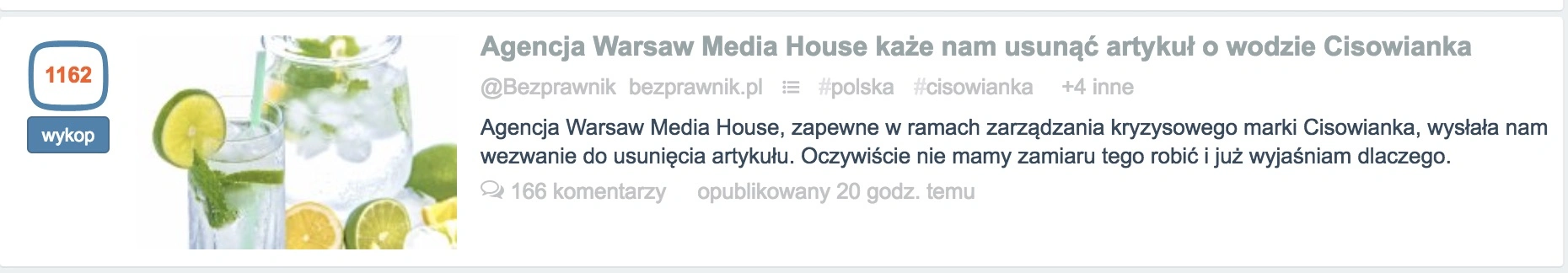 Zapewne na skutek mojej wczorajszej publikacji, Cisowianka zdecydowała się na zakończenie współpracy z agencją Warsaw Media House.