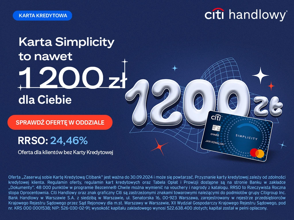 - Citi Handlowy rozdaje teraz klientom 1200 zł bonusu! Masz czas tylko do końca września
