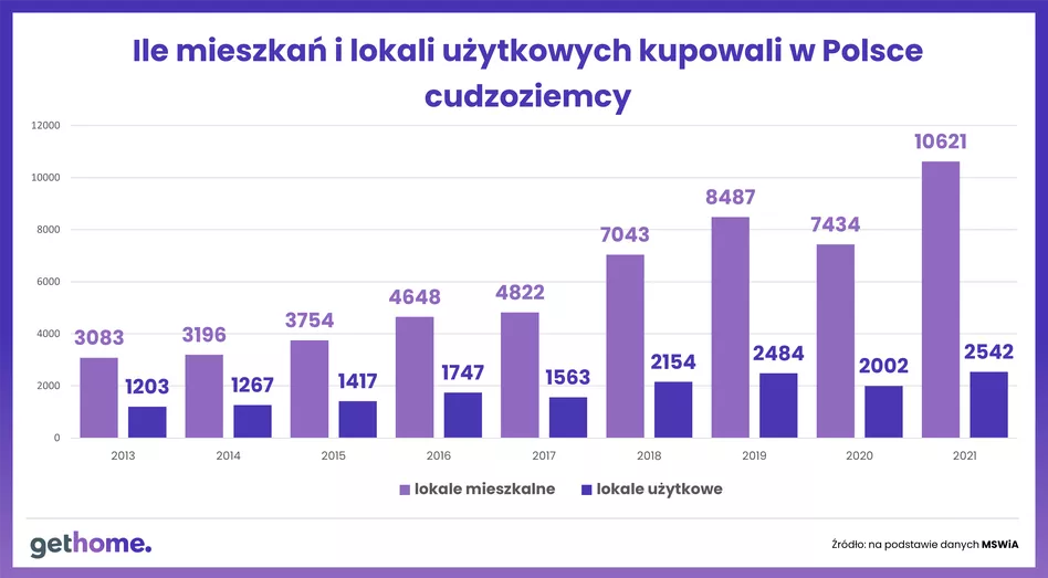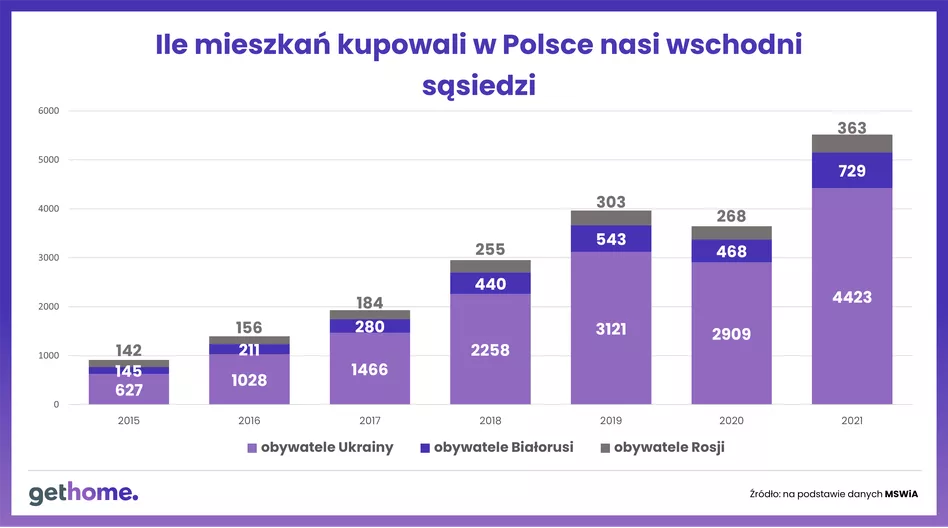 Wydawałoby się, że wciąż rosnące ceny lokali skutecznie odstraszą kupujących - a jednak na rynku polskich nieruchomości padł sprzedażowy rekord. Co prawda, nasi rodacy nie kupowali ostatnio nieruchomości szczególnie tłumnie, ale za to wyręczyli ich Ukraińcy i Rosjanie. Jak pokazują dane serwisu GetHome.pl, w ubiegłym roku cudzoziemcy kupili rekordowo dużo mieszkań w Polsce.