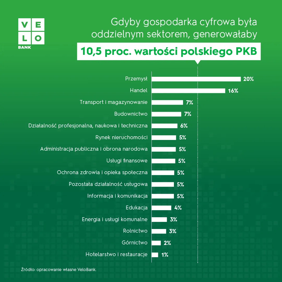 Polska gospodarka opiera się przede wszystkim ciągle na przemyśle i w nieco mniejszym zakresie - na handlu. Ale, jak zauważają eksperci VeloBanku, coraz istotniejsza staje się "cyfrowa" część naszego PKB.