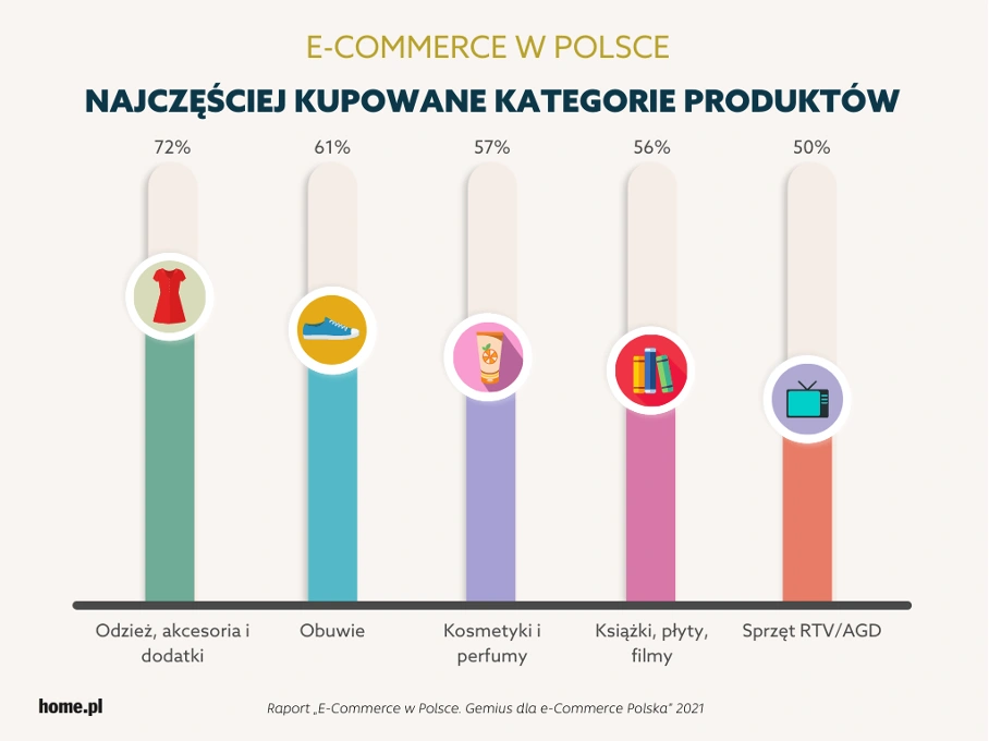 Najpopularniejsze kategorie produktów, po które sięgają Polacy to: