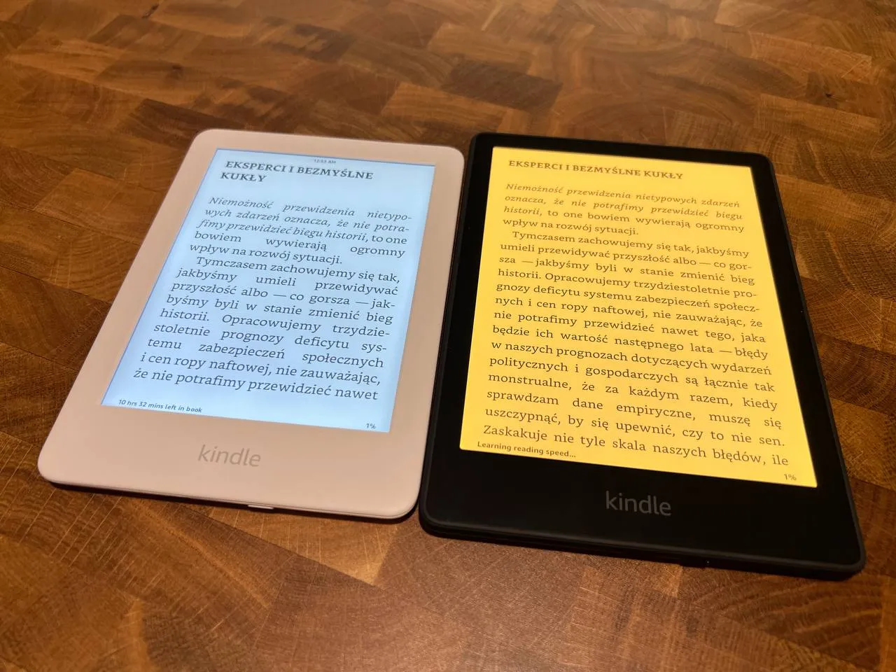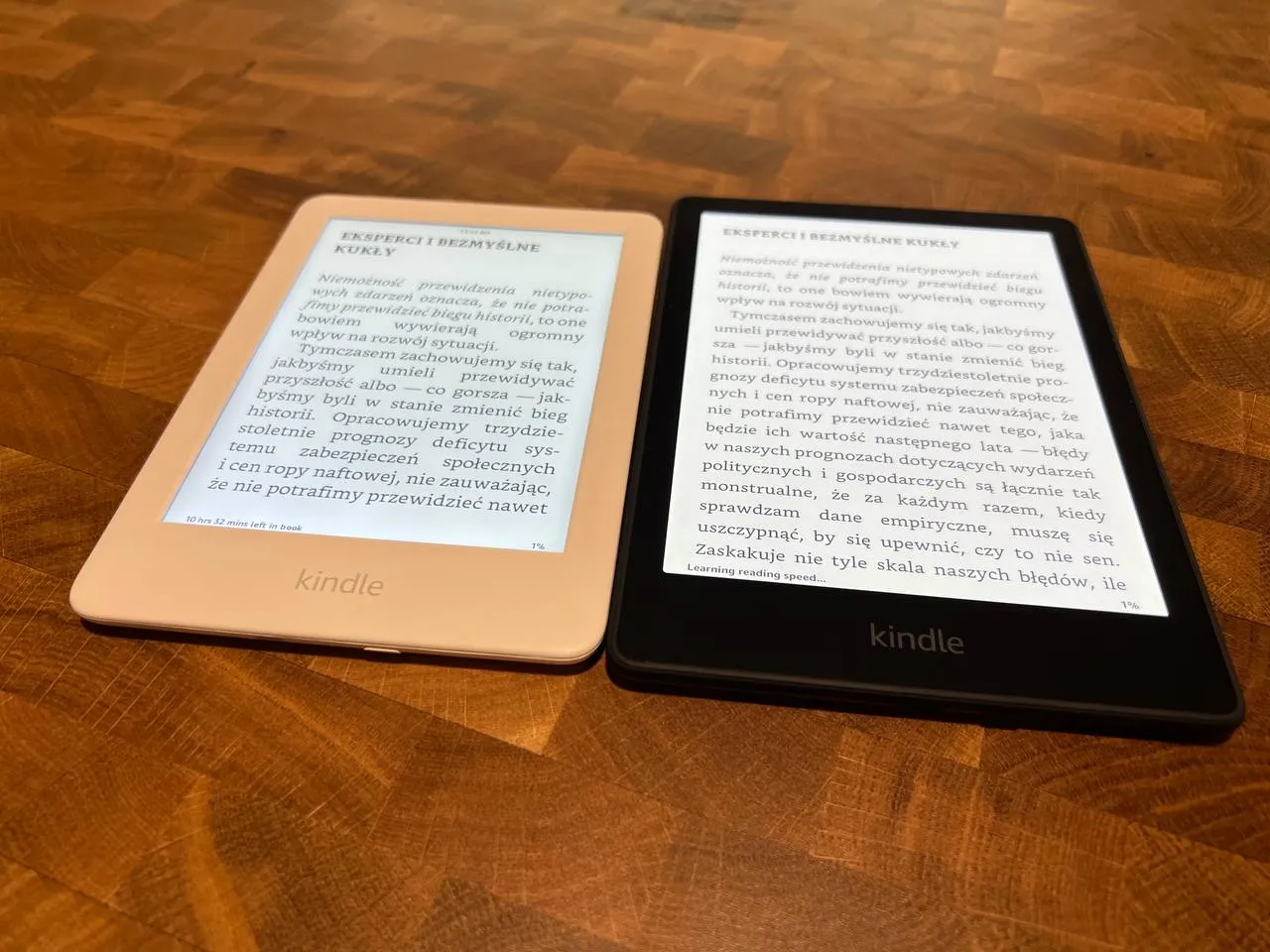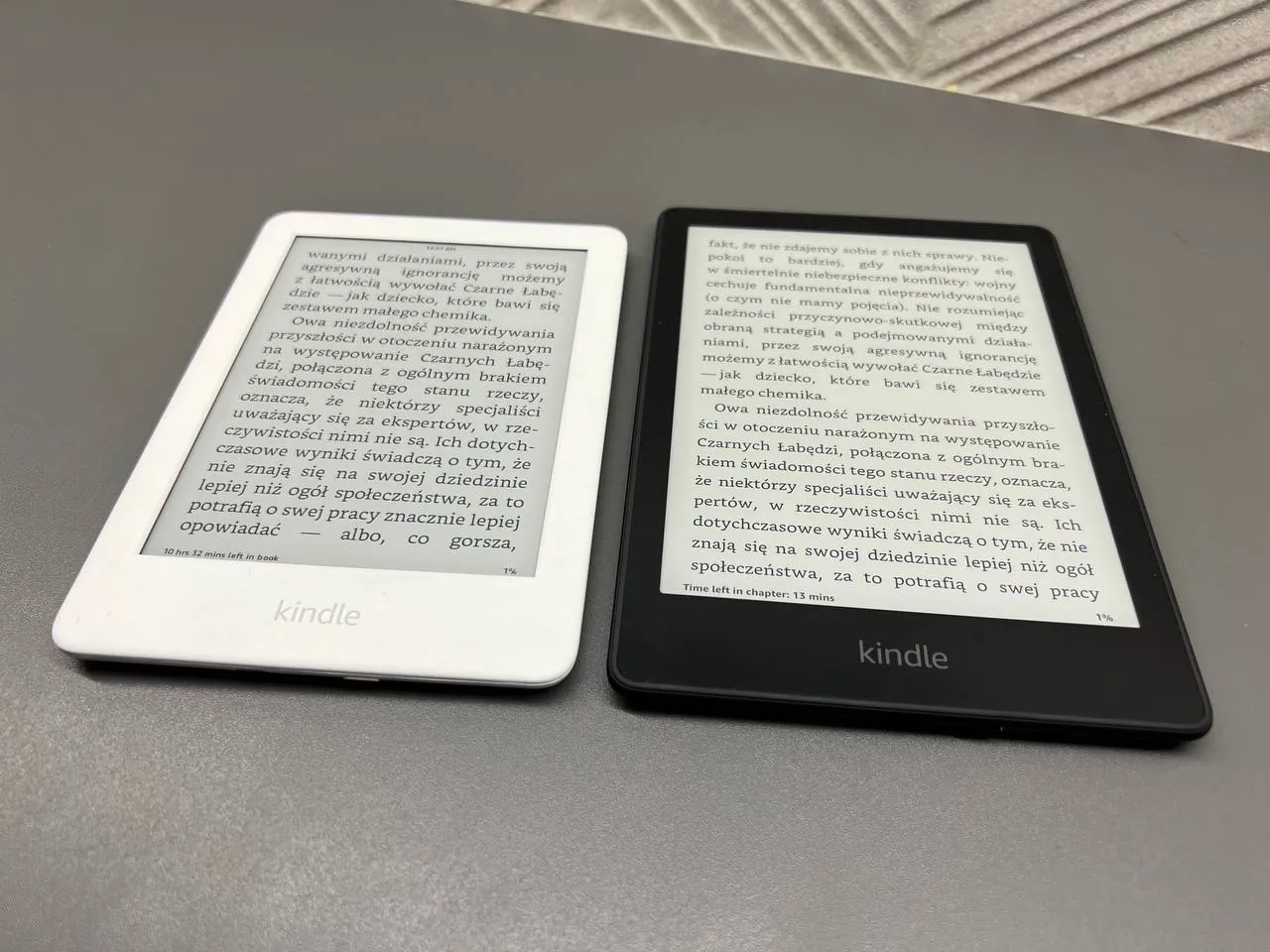 Są tylko trzy rzeczy, w których moim zdaniem klasyczny Kindle wygrywa. Pierwszą z nich jest czas pracy na baterii, co jest niejako zrozumiałe - tam mało co ma ją obciążać. Drugą jest higiena - Paperwhite strasznie się palcuje, nawet zrobienie mu tych kilku zdjęć do tekstu było prawdziwą katorgą. Ale podobno jest wodoodporny, więc coś za coś. Trzecia to wreszcie kolory obudowy. Paperwhite jest tylko czarny, z kolei Kindle 10 pojawia się na biało, a Kindle 11 może być też granatowy.