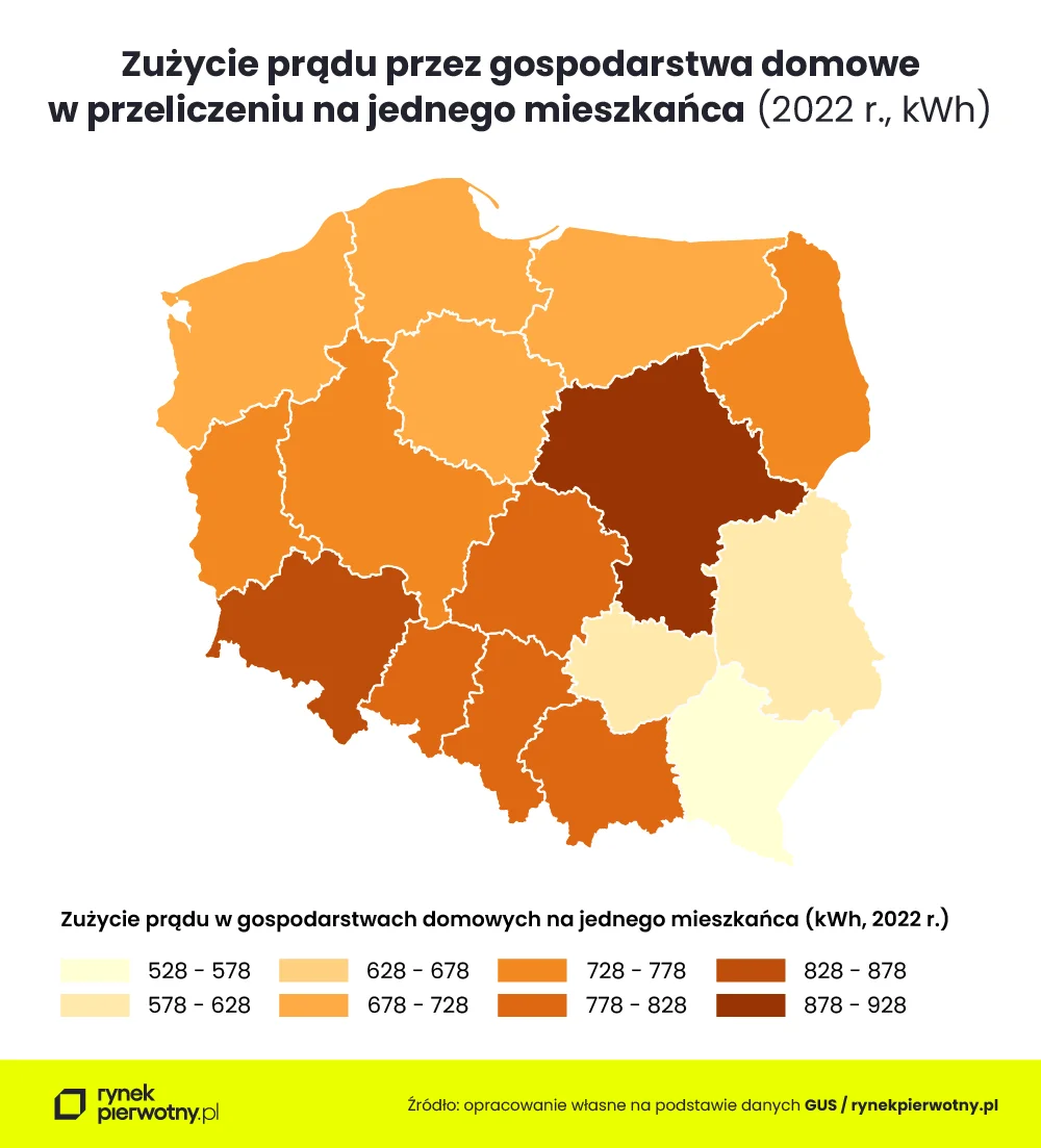 Rok 2022 pokazał nam interesujące różnice w zużyciu energii elektrycznej na terenie Polski. Z jednej strony mamy regiony, gdzie zużycie jest relatywnie niskie, a z drugiej – stolica i okolice, która wyraźnie odstaje od reszty kraju.