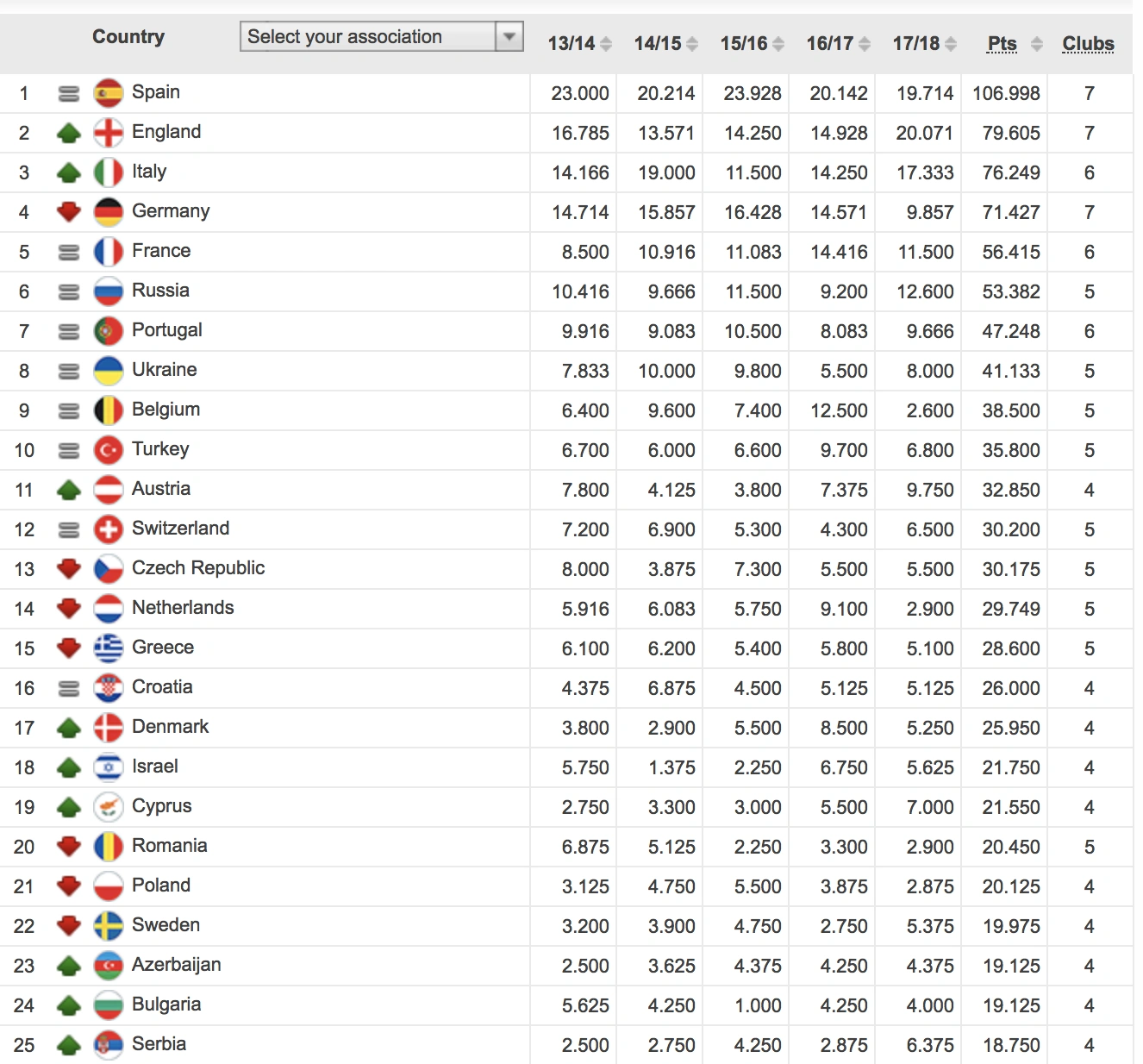 W dużej mierze wyjaśnia to tak zwany Współczynnik UEFA, który na bieżąco można śledzić w tej witrynie.