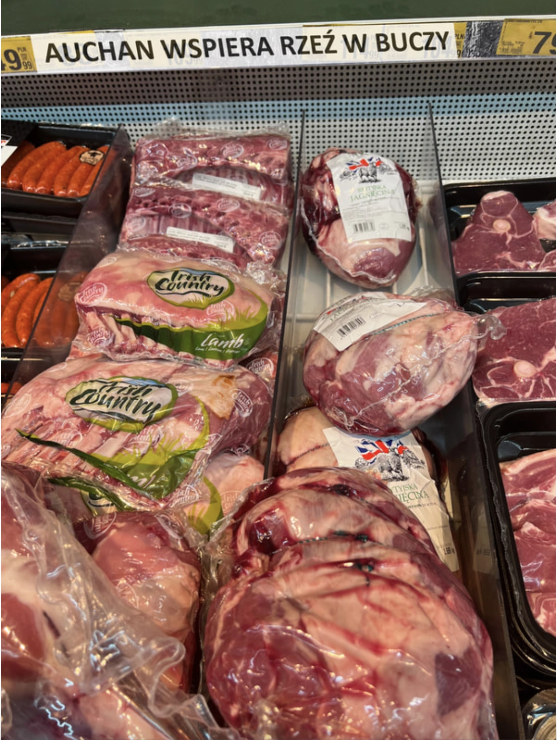 Etykiety w Auchan informują o ludobójstwie w Ukrainie. I o tym, jak sieć wspiera rosyjską inwazję