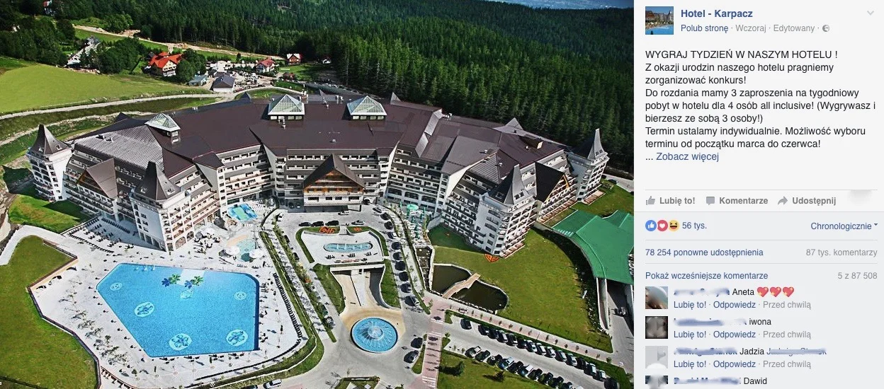 Mamy 2017 rok, ale polscy internauci wciąż nie potrafią odróżnić prawdziwego konkursu na Facebooku od ewidentnego oszustwa. Niedawno pisaliśmy o oszukańczym konkursie "Lotto", a teraz blisko 100 000 osób spróbowało wygrać tygodniowy pobyt w hotelu w Karpaczu. Zamiast tego, każdy może stracić pieniądze na SMS-ach za 60 złotych.