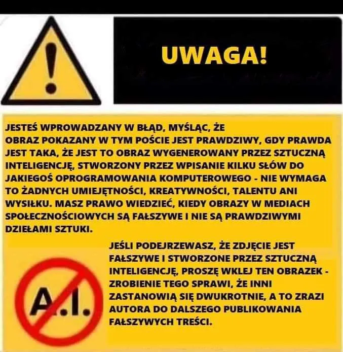 Wspomniany wcześniej komunikat, który pojawia się na przykład na Facebooku czy Instagramie, podkreśla, że obrazy tworzone przez sztuczną inteligencję nie wymagają umiejętności artystycznych, kreatywności ani wysiłku. Chociaż AI może tworzyć zachwycające grafiki, należy pamiętać, że nie są one efektem tradycyjnego procesu twórczego, co dla wielu osób starszych może być trudne do zrozumienia. Ostrzeżenia te mają na celu zachęcenie do ostrożności i krytycznego myślenia podczas przeglądania treści w mediach społecznościowych.