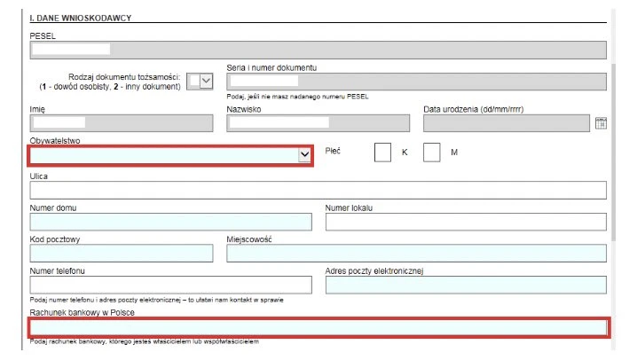 Kolejny punkt to oświadczenie, że masz miejsce zamieszkania w Polsce i posiadasz polskie obywatelstwo. W przypadku cudzoziemców trzeba zaznaczyć oświadczenie mówiące o tym, że dana osoba jest cudzoziemcem w rozumieniu ustawy o dodatku solidarnościowym. W tej sytuacji trzeba też uzupełnić informacje dotyczące prawa pobytu.