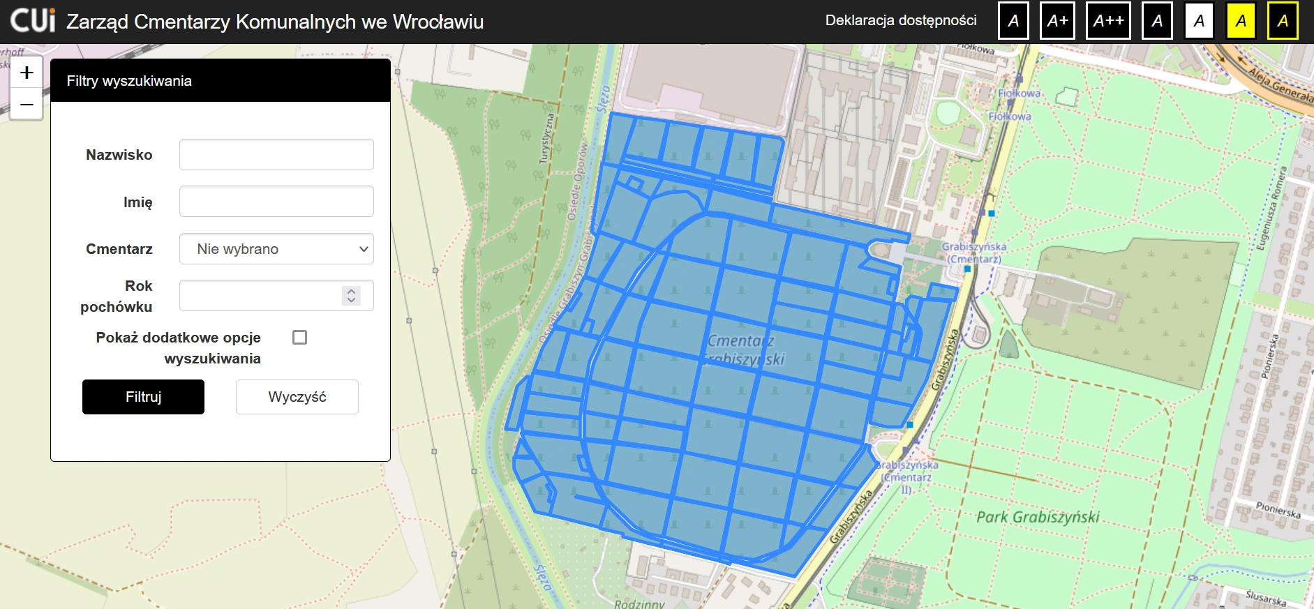 Weźmy jako przykład Łódź, gdzie specjalna wyszukiwarka jest na stronie Cmentarzy Komunalnych w Łodzi. Po wejściu na stronę wybieramy opcję: „Wyszukiwarka grobów”. Zostaniemy przełączeni do podstrony, która będzie od nas wymagała wprowadzenia kilku danych. Po pierwsze – imię i nazwisko poszukiwanej przez nas osoby. Po drugie – co ułatwi filtrowanie wyników wyszukiwania – podanie widełek dotyczących daty urodzin i daty zgonu pochowanego. W przypadku łódzkiej wyszukiwarki mamy też do wyboru jeden z trzech cmentarzy komunalnych w tym mieście (możemy też zaznaczyć wszystkie, jeśli nie wiemy na jakim znajduje się grób).
