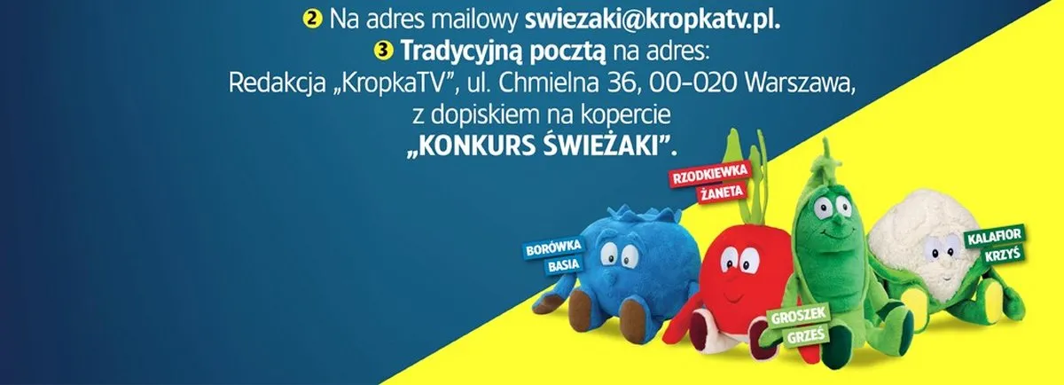 - Konkurs, a w nim Świeżaki - 600 sztuk do wygrania w gazetce z sieci Biedronka "KropkaTV"