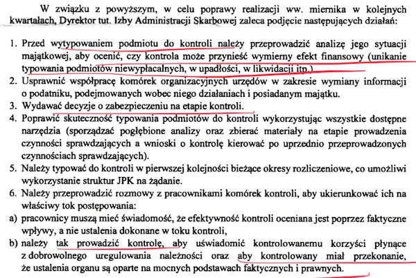 Kontrola skarbowa nie jest po to, aby było legalnie - tylko po to, aby fiskus miał z tego wpływy do budżetu w postaci zapłaconych, zaległych podatków. To już oficjalna polityka Krajowej Administracji Skarbowej, ujawniona w piśmie skierowanym od urzędników niższego szczebla.