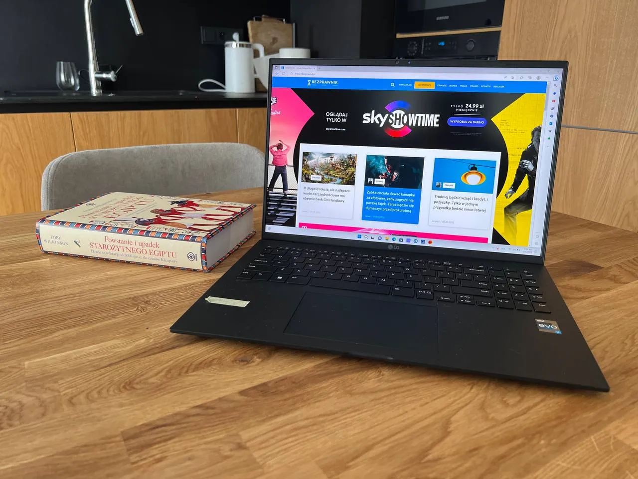 Stosunkowo niewielkie gabaryty nie ograniczają wydajności sprzętu, ale też nie przekładają się negatywnie na pracę baterii. Producent deklaruje, że w sprzyjających okolicznościach damy radę przepracować na tym sprzęcie ponad 20 godzin. To bardzo możliwe, chociaż ja nigdy nie byłem przesadnym fanem pracy na komputerze "w sprzyjających okolicznościach". Odpalam więc pełną jasność, raczę się wszystkim, co fabryka dała i mnie przy dość intensywnym używaniu udało się osiągać trochę poniżej 10 godzin. Nadal dobry wynik. Niewykluczone zresztą, że wynika to z zastosowania wydajnych procesorów 13. generacji Intel z dedykowanym segmentowi "Premium" certyfikatem Intel® Evo™ - one są skupione nie tylko na osiągach, ale właśnie optymalizacji czasu pracy na baterii, przyspieszonym uruchamianiu itd. Intel® Evo™ to też m.in. szybsza komunikacja po kablu podczas przesyłania plików czy zdecydowanie szybsza i bardziej niezawodna komunikacja Wi-Fi. Generalnie kupując dziś laptopa, warto tego standardu Intel® Evo™ wypatrywać.