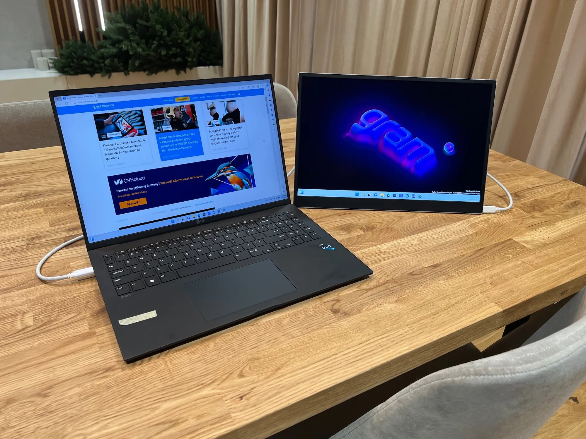 Tu muszę nadmienić, że do samego LG gram +view nie trzeba mieć wcale komputera od LG. One się oczywiście bardzo fajnie uzupełniają, pasują do siebie wizualnie, wymiarami i wagowo, ale mobilny monitor dobrze działa też z innymi urządzeniami. I tak oto ja przez pewien czas zmieniałem sobie – a to korzystałem z testowanego LG, a to mojego prywatnego komputera czy telefonu. W każdym przypadku wszystko działało bezproblemowo już od momentu wpięcia wtyczki.