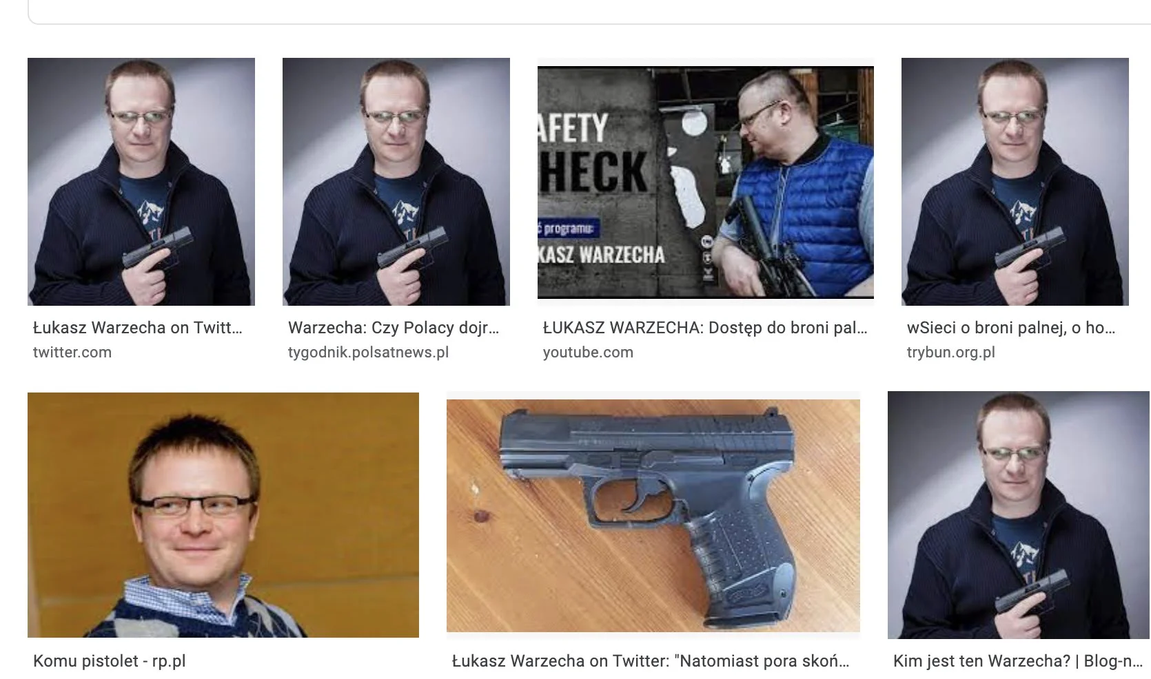 Warzecha w ostatnich dniach kreuje się na tchórza, takiego co to siedzi w piwnicy pod stołem i boi się uchodźców, cen paliwa, kredytów, wojny, wojny atomowej. Trzy razy dziennie dostaje z tego powodu ataków migreny. To jest kolejny zabieg komediowy na zasadzie kontrastu, bo przecież kiedy wpiszemy w Google "Łukasz Warzecha", zostaniemy uraczeni wyłącznie takimi grafikami: