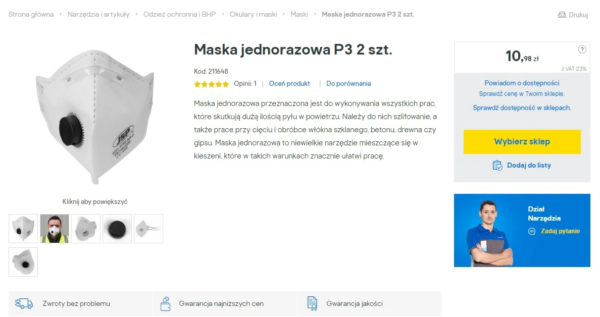 maseczka koronawirus Castorama, zrzut ekranu