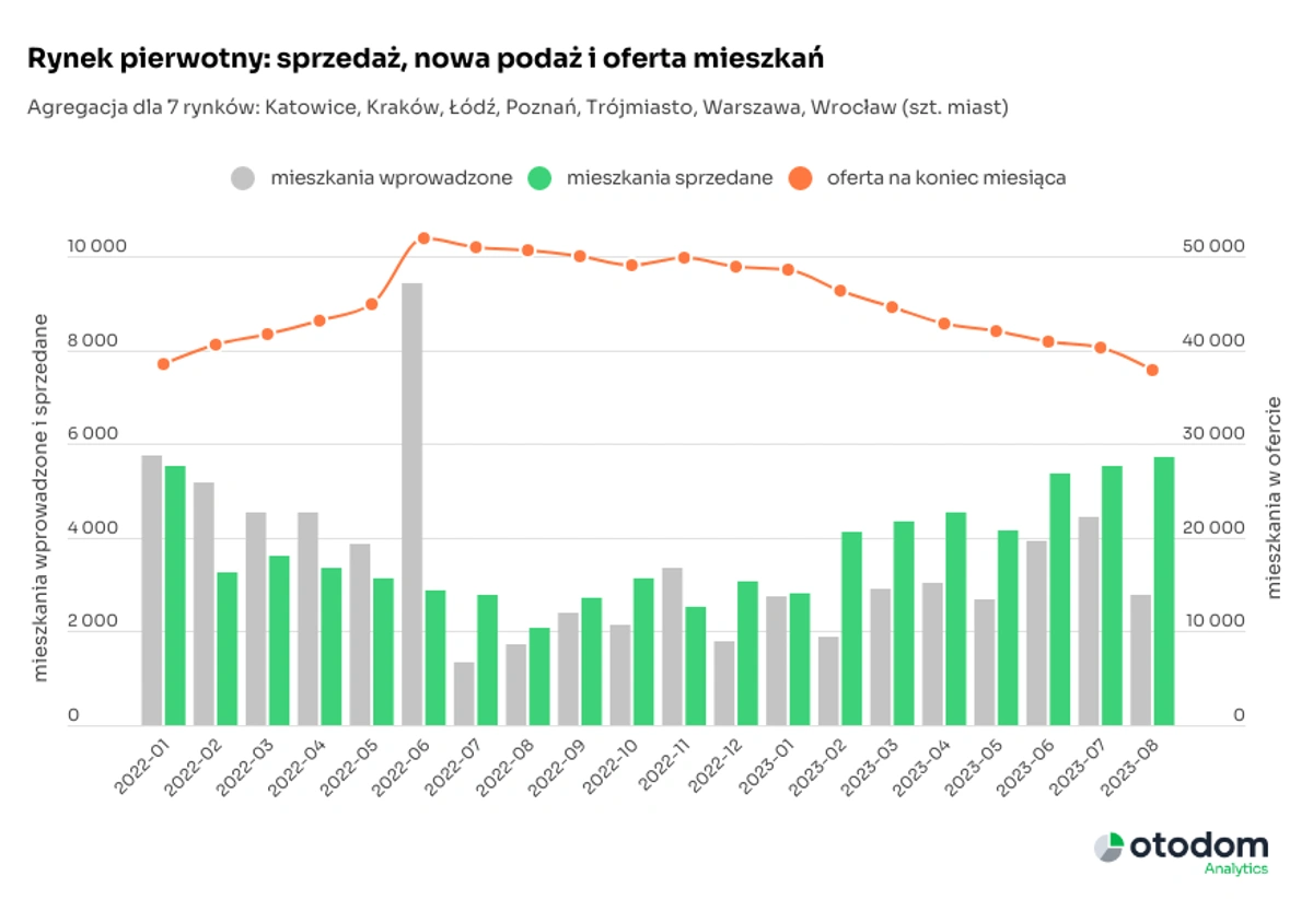 Sierpień 2023 przyniósł kolejne zmiany na rynku nieruchomości w Polsce. Mimo że sierpień był miesiącem udanym dla deweloperów, na horyzoncie pojawiają się chmurki zapowiadające przyszłe burze w sektorze nieruchomości. Po uruchomieniu programu "Bezpieczny Kredyt 2%" ceny mieszkań poszybowały w górę, a dostępność mieszkań na sprzedaż systematycznie maleje.