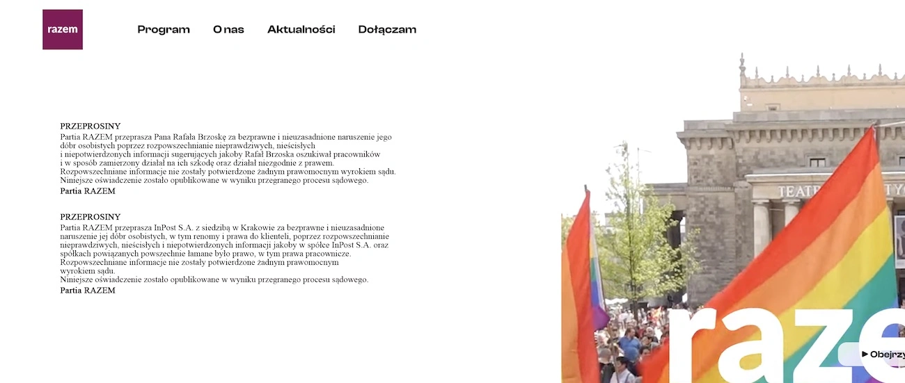 - Na stronie głównej Partii Razem w końcu z sensem. Partia przeprasza InPost za swoje urojenia