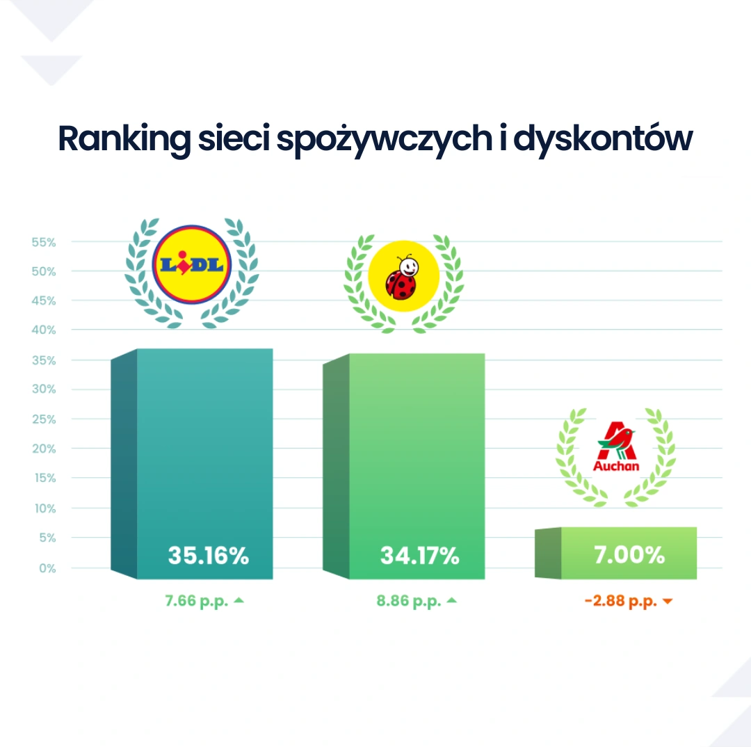 Jaka jest najpopularniejsza sieć handlowa w Polsce? Zależy rzecz jasna jak liczyć. Biedronka ma może i najwięcej sklepów, ale według najnowszego rankingu firmy Listonic, to Lidl pozostaje ulubionym sklepem Polaków. Martwi natomiast wysoka pozycja firmy, która zajęła ostatnie miejsce podium.