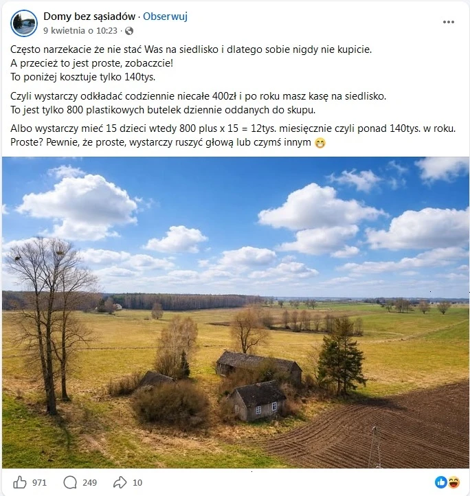 - Zróbcie sobie 15 dzieci, to kupicie działkę za 800 plus. Skandaliczny post pośrednika obiegł sieć