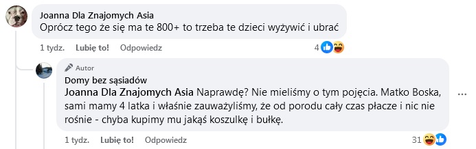 Agencja nieruchomości opublikowała ironiczny wpis na temat rodzin z dziećmi. W swoim poście w prowokacyjnym tonie przekonuje, że wbrew stereotypom wiele osób stać na oferowane przez nią domy. Pieniądze na ten cel mogą bowiem pochodzić z… systemu kaucyjnego lub sprowadzenia na świat sporej liczby potomków, którzy zapewniają stałe wpływy z programu Rodzina 800 plus.