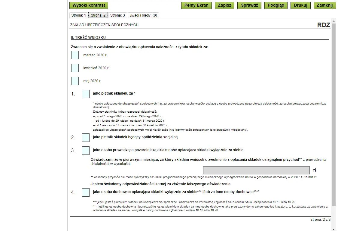 Jest już nowy wniosek o zwolnienie ze składek ZUS. Co się zmieniło?