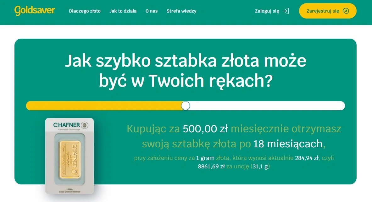 W jaki sposób można kupić złoto w Goldsaver? Kluczowa informacja: nie potrzebujesz do tego dużej ilości pieniędzy. Minimalna kwota zakupu złota w sklepie to 50 złotych. Oczywiście za minimalną kwotę nie dostaniemy nawet grama złota (będzie to ponad 0.2 g), ale jeśli będziemy lokować w złocie swoje oszczędności regularnie, to na koncie kolejne gramy będą kumulowały się aż do osiągnięcia poziomu wspomnianej jednej uncji. Wtedy taka sztabka stanie się naszą fizyczną własnością. Bardzo niski próg wejścia jest tym, co może do Goldsavera skusić osoby nie chcące na samym początku dokonywać w złocie zbyt dużych oszczędności.