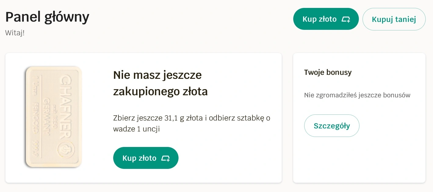 Płatność odbywa się poprzez jeden z popularnych sposobów płatności elektronicznych – Blik, Apple Pay, Google Pay czy Przelewy24. W panelu można też znaleźć bardzo przydatny element: historię transakcji. Dzięki niej dowiemy się jak na przestrzeni minionych dni, tygodni bądź miesięcy wyglądało nasze oszczędzanie. Jest tu też okienko na "Twoje bonusy". Jeden z nich to 100 złotych od pierwszej sztabki, jakie dostaniesz korzystając z tego kodu rabatowego: [???] W Goldsaver.pl taki bonus jest wykorzystywany automatycznie w momencie, w którym łączna ilość zakupionego przez danego użytkownika złota wyniesie co najmniej jedną uncję.