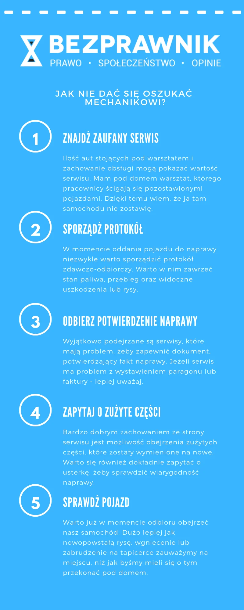 Niestety opisywany temat jest tak szeroki, że wszystkich metod nieuczciwych mechaników nie da się przedstawić w jednym wpisie. Warto jednak mieć na uwadze pewne ogólne zasady, które mogą uchronić nas od nieprzyjemności.