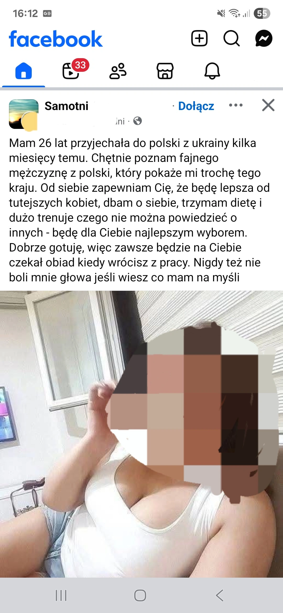 Mechanizm szerzenia dezinformacji i nienawiści jest prosty, ale skuteczny. Hakerzy zdobywają dostęp do kont polskich użytkowniczek – najczęściej poprzez phishing, słabe hasła lub podszywanie się pod administrację serwisów. Następnie z przejętych kont publikują wpisy w grupach tematycznych, np. „samotni szukają”, dodając wpisy, które wzbudzają olbrzymie emocje. O co dokładnie chodzi? Poniżej publikujemy jedno z ewidentnie fałszywych ogłoszeń: