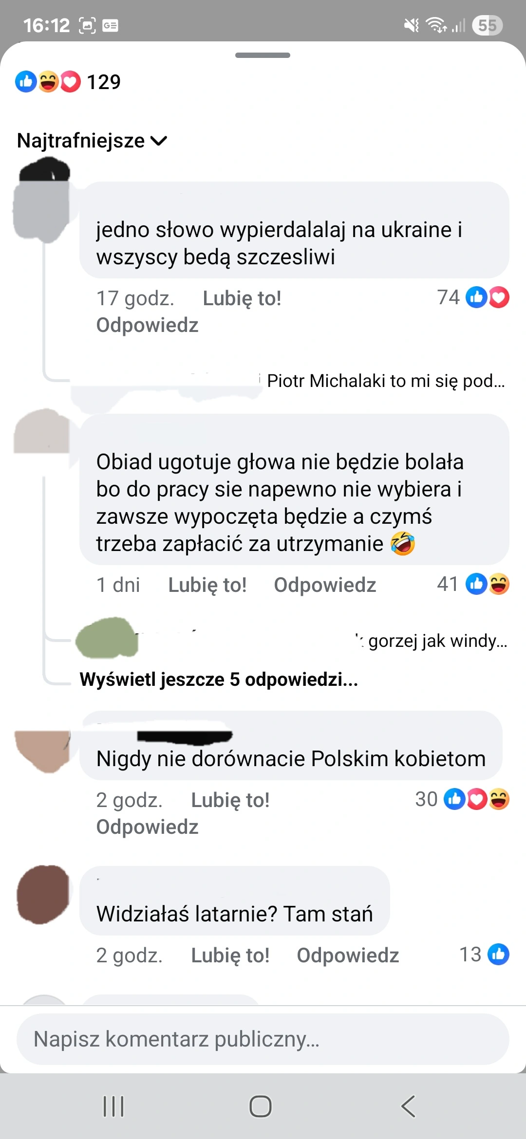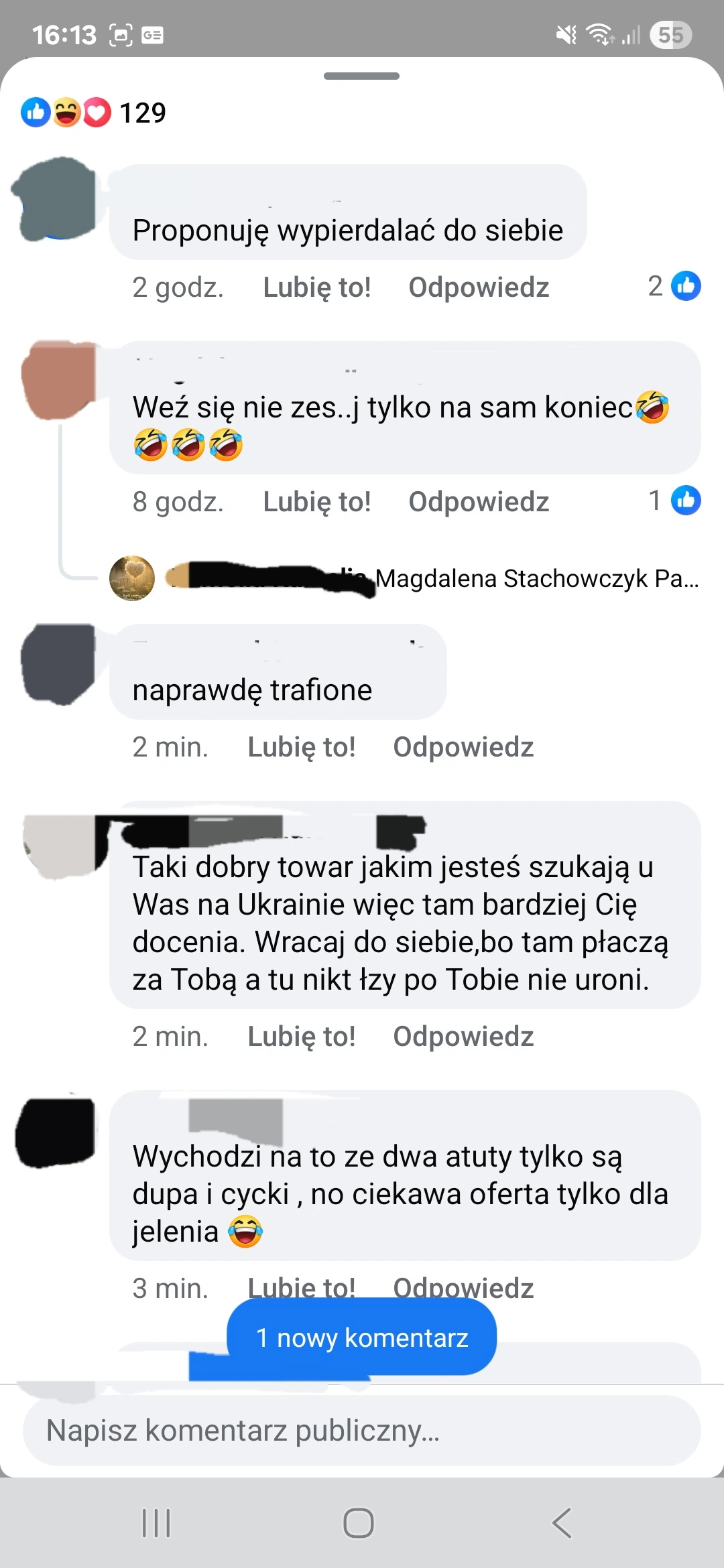 Internauci (nie żałując słów powszechnie uznawanych za obelżywe) sugerują rzekomej osobie szukającej polskiego męża wynosić się, jechać na front (serio? Życzymy innym śmierci? Można mieć sympatie i antypatie, ale to zdecydowanie poniżej krytyki). Twierdzą, że jest żałosna i porównują do osób trudniących się najstarszym zawodem świata. Aż przykro się tego czyta. Przykładowe komentarze (oczywiście zanonimizowane) prezentujemy na poniższych screenach.