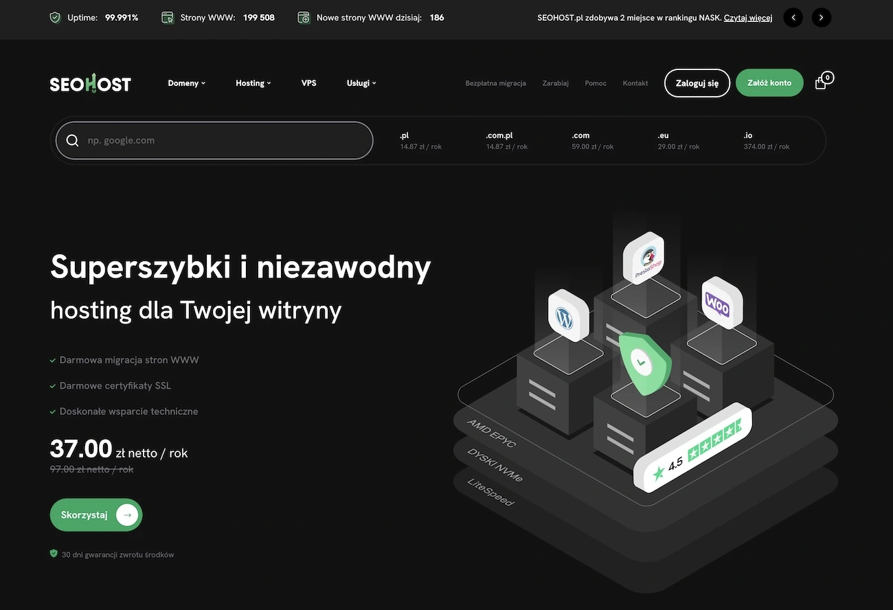 Marketing tytanów polskiego rynku wmówił, że jakość usługi hostingowej wymaga płacenie za nią ogromnych kwot. Myślę, że największym zaskoczeniem jest dla klientów to, że migracja do nas faktycznie nie generuje zmartwień, a SEOHOST naprawdę “dowozi” to, co obiecuje w przystępnej cenie.