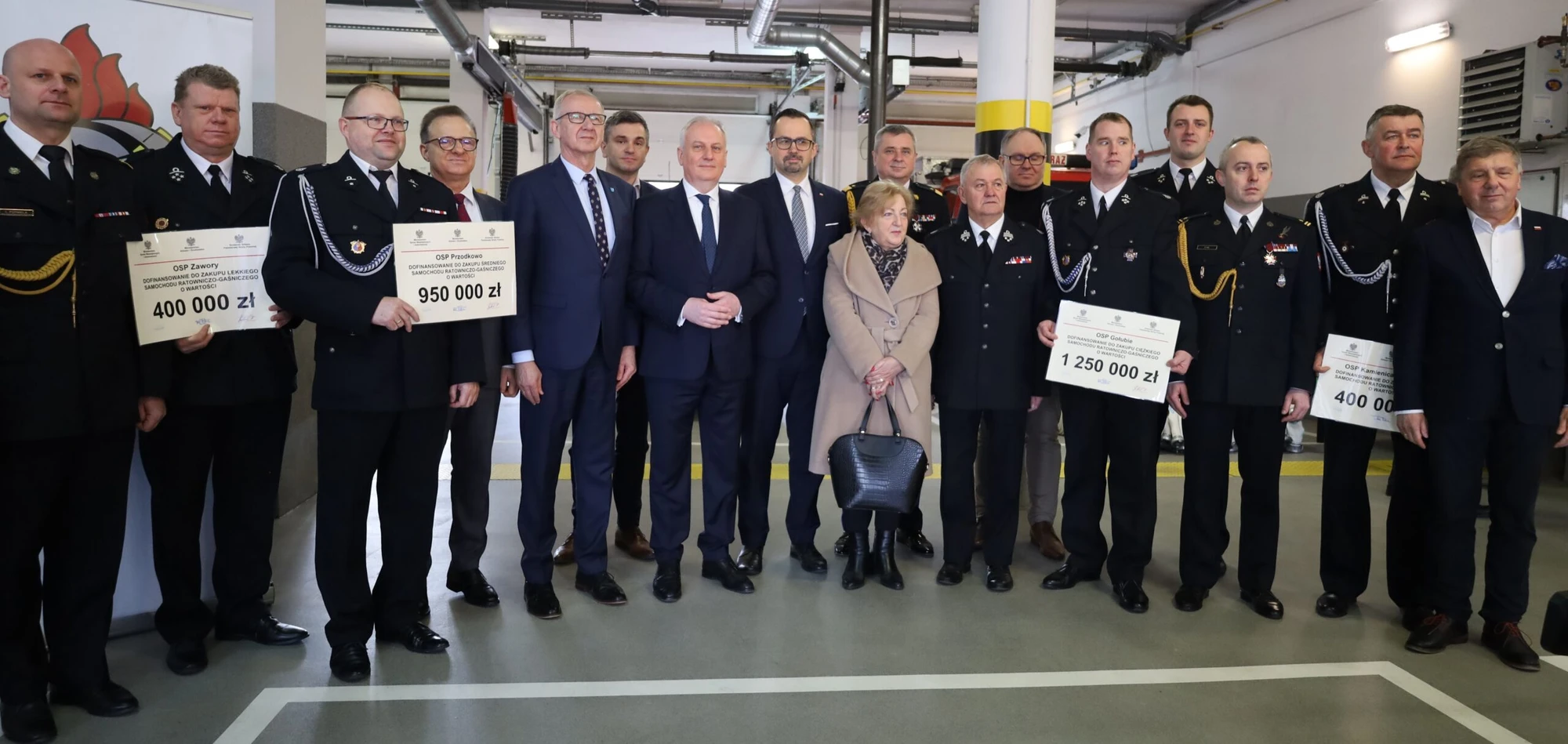 Rządowe promesy na wozy dla OSP wyglądają ładnie, ale tylko do momentu obrócenia kartonowego czeku na drugą stronę