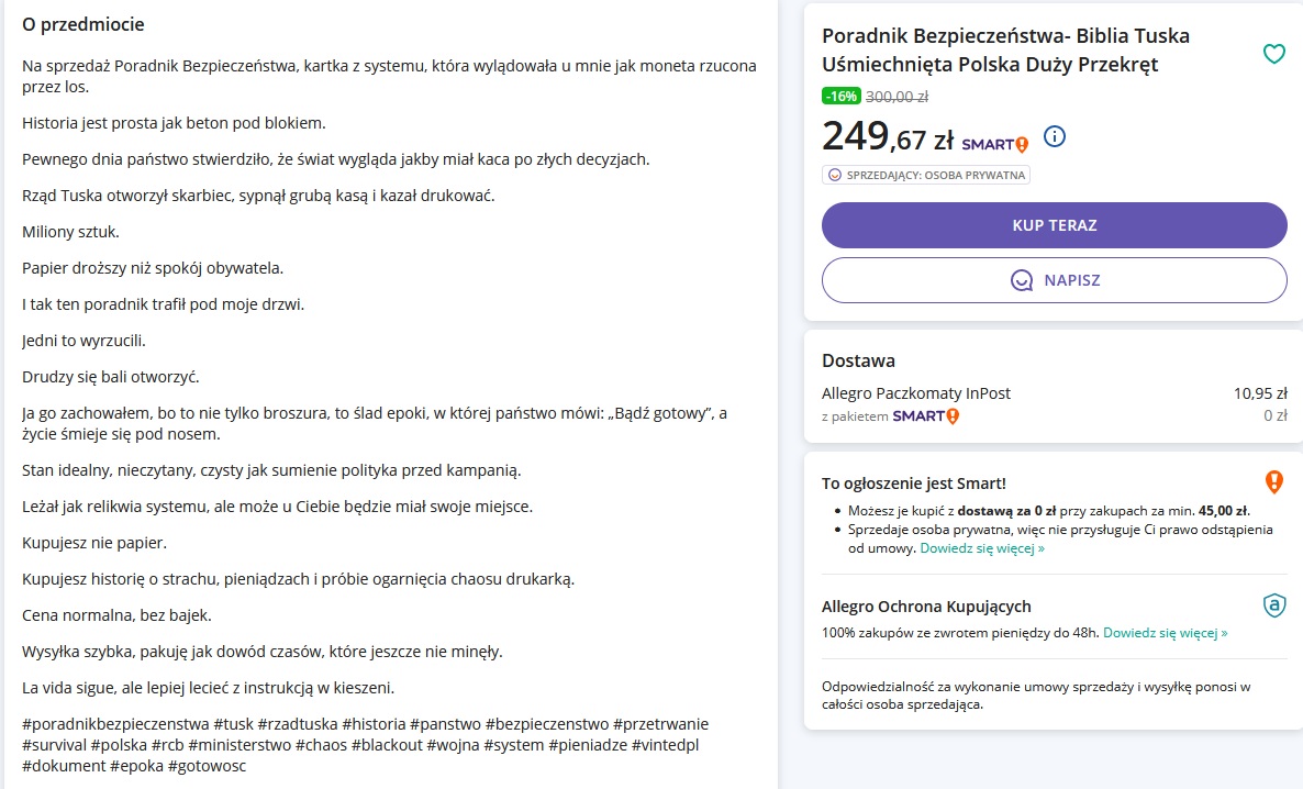 - Rządowy „Poradnik bezpieczeństwa” trafia na Allegro i Vinted. Kosztuje nawet 5000 zł
