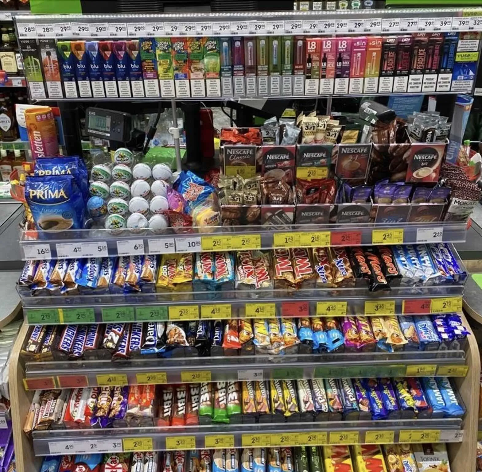 Wyobraźcie sobie, że zamiast e-papierosów na tej półce ze słodyczami stoją papierosy.