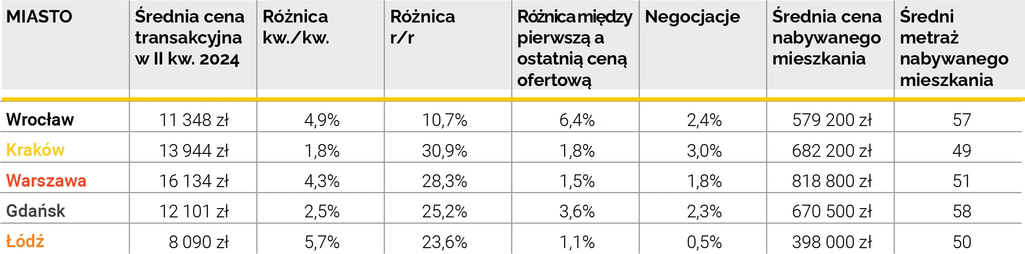 Dopiero po długim czasie uświadamiają sobie konieczność obniżenia ceny, ale niestety często jest to zbyt późno, co sprawia, że oferty są wciąż zawyżone w stosunku do rzeczywistości rynkowej. Mimo to, dane pokazują, że transakcyjne ceny na rynku wtórnym w największych miastach Polski rosną. W Krakowie średnia cena za metr kwadratowy wzrosła o 30,9% w ujęciu rocznym, podczas gdy w Warszawie było to 28,3%.