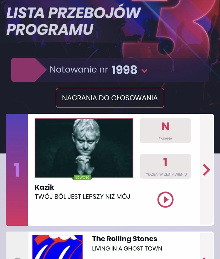 „Twój ból jest lepszy niż mój” to wydany kilka dni temu utwór Kazika, w którym dosadnie komentuje on zachowanie Jarosława Kaczyńskiego i jego świty. Muzycznie to nie moja bajka, ale to cenny głos faceta, który do tej pory łaskawym okiem patrzył na PiS. Docenili to słuchacze Trójki, którzy wywindowali piosenkę na pierwsze miejsce listy przebojów. Dzień później… strona z ostatnim notowaniem zniknęła. Czy Trójka ocenzurowała Kazika?