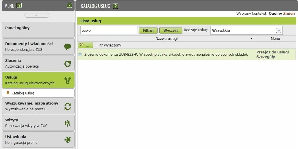 Najprościej i najwygodniej jest złożyć wniosek za pomocą Platformy Usług Elektronicznych. Po zalogowaniu się na PUE wybieramy z katalogu usług "Złożenie dokumentu ZUS-EZS-P. Wniosek płatnika składek o zwrot nienależnie opłaconych składek.