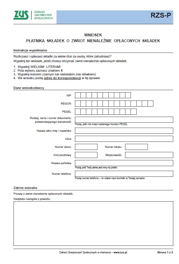 Wniosek o zwrot składek ZUS za marzec