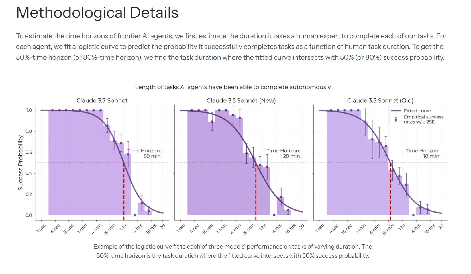 Organizacja METR (Model Evaluation & Threat Research) od kilku lat mierzy tzw. horyzont czasowy modeli AI, czyli np. jak długie zadanie, mierzone czasem pracy doświadczonego człowieka, jest w stanie samodzielnie wykonać z 50-procentową skutecznością. Ważne zastrzeżenie: chodzi tu o czas ludzkie, nie czas działania modelu.