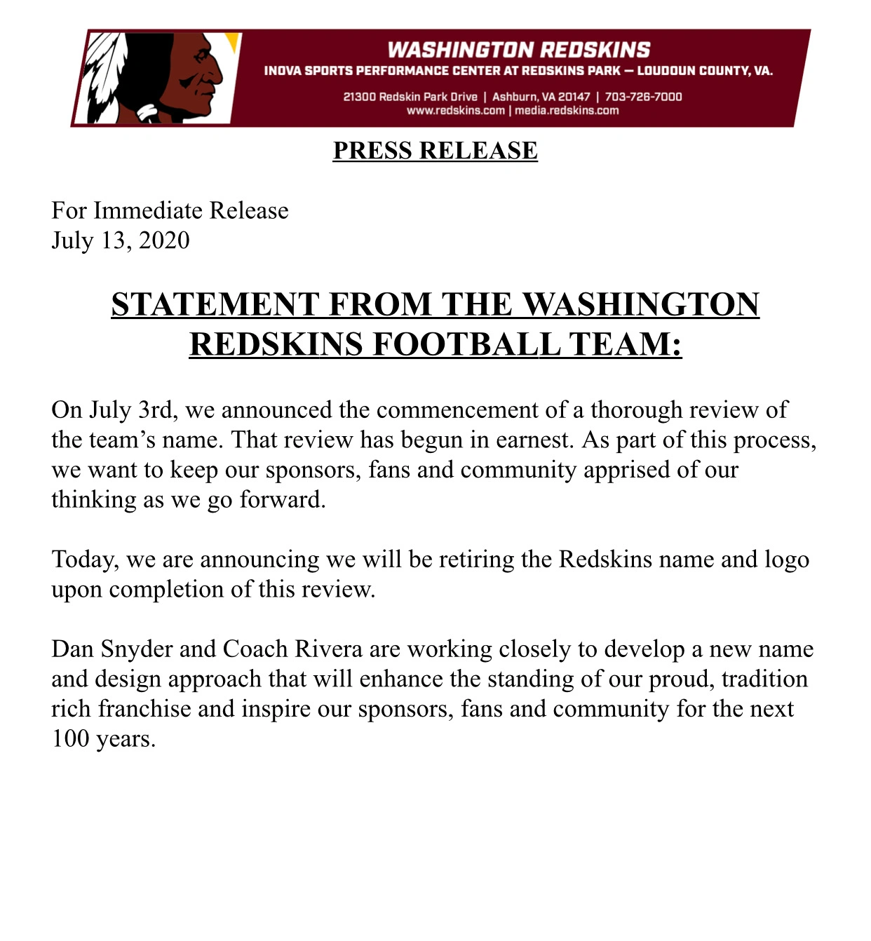 Władze klubu po dokonaniu audytu zaprezentowały dziś na łamach Twittera stanowisko, zgodnie z którym ten liczący 88 lat klub piłkarski niebawem znajdzie sobie nową nazwę oraz logo. Przyczyną takiej decyzji jest oczywiście poprawność polityczna. Posiadam europejską, a nawet polską wrażliwość, więc oczywiście nie potrafię jednoznacznie ocenić czy taka nazwa klubu rzeczywiście obraża Indian. Z mojej prymitywnej, zaściankowej perspektywy, jest to raczej symboliczne i sympatyczne nawiązanie do dziedzictwa kulturowego, które przez lata stało się po prostu ważnym symbolem sportowym. To trochę tak, jak gdyby krzyż w herbie Realu Madryt obrażał chrześcijan. Tymczasem swego czasu chrześcijanie dość mocno zabiegali o jego obecność, nie bacząc na protesty muzułmanów.