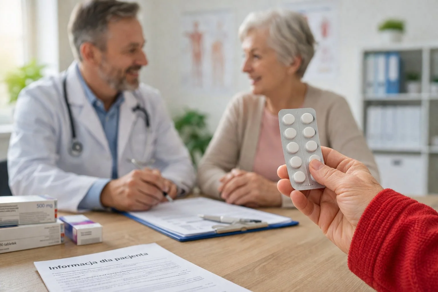 Po drugie — porozmawiać z lekarzem o zamiennikach. Większość leków ma odpowiedniki generyczne zawierające tę samą substancję czynną. W przypadku Pradaxy lekarz może po prostu wystawić receptę na inny produkt z dabigatranem, pozostający na liście bezpłatnej dla seniorów. Dziś wszystkie recepty elektroniczne widoczne są na Internetowym Koncie Pacjenta, więc zmiana preparatu nie wymaga kolejnej wizyty w gabinecie — lekarz prowadzący może wystawić nową e-receptę zdalnie.